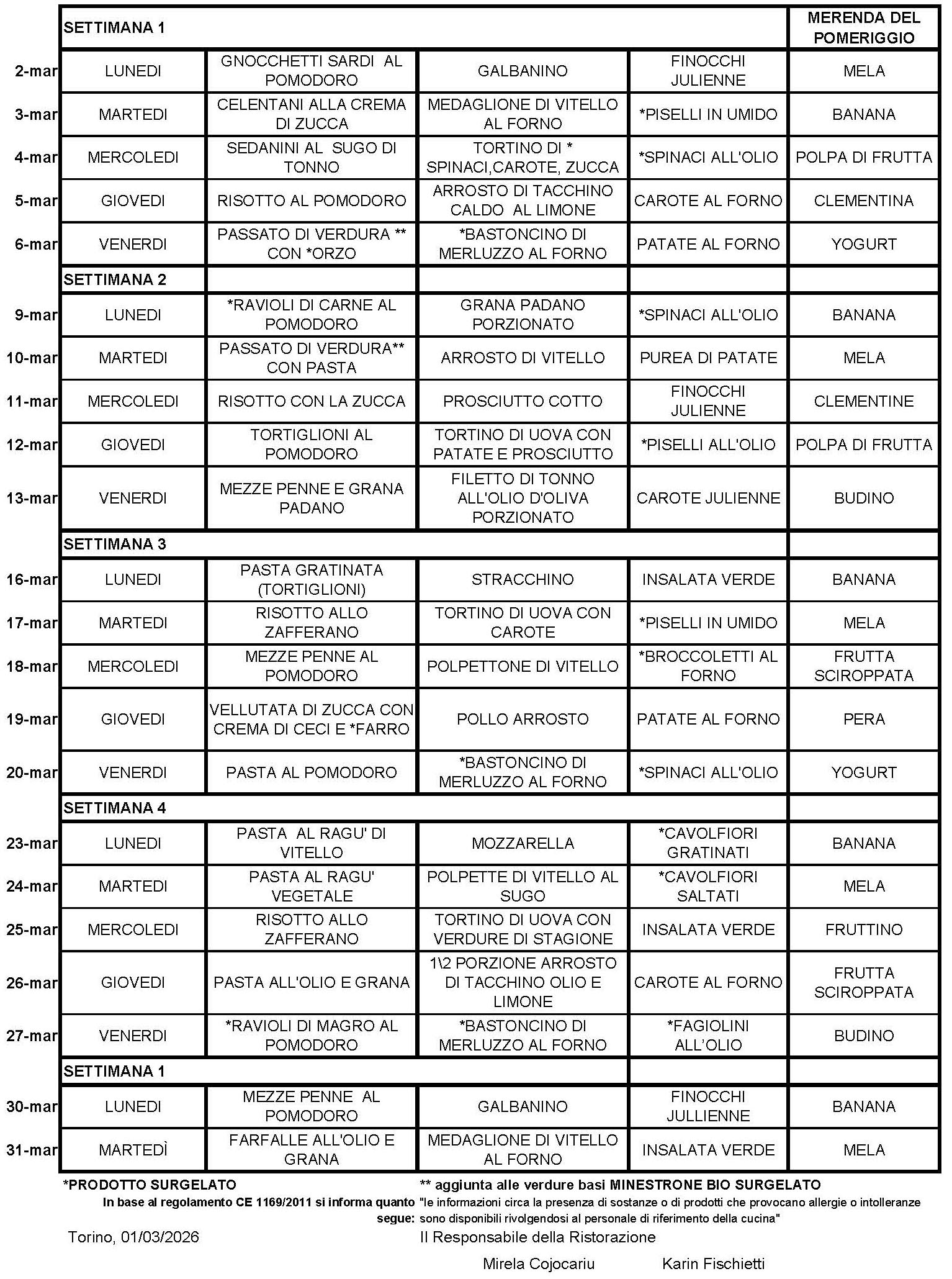 IL RESPONSABILE DELLA RISTORAZIONE Mirela Cojocariu Karin Fischietti