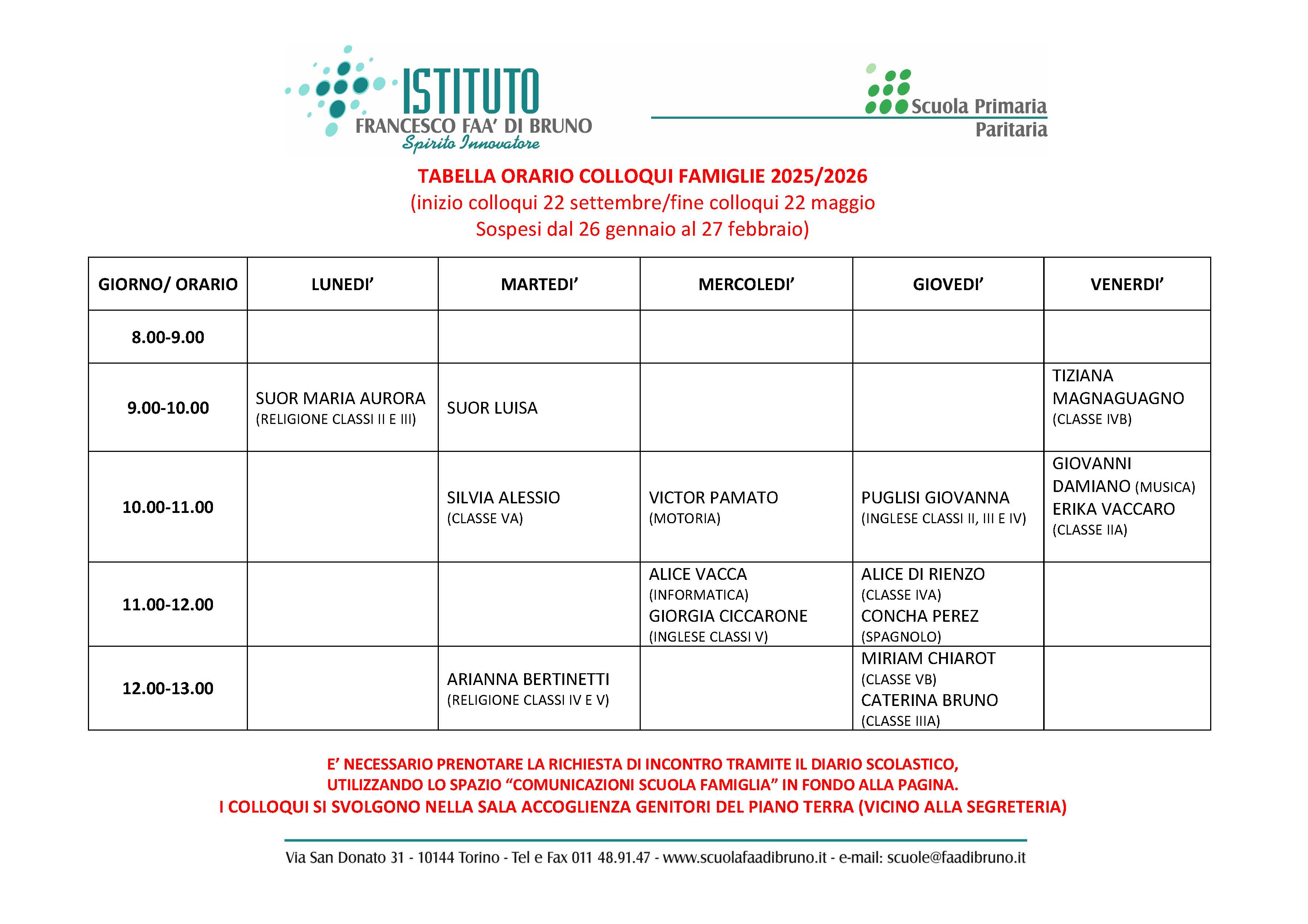 I COLLOQUI SI SVOLGONO NELLA SALA ACCOGLIENZA GENITORI DEL PIANO TERRA (VICINO ALLA SEGRETERIA)